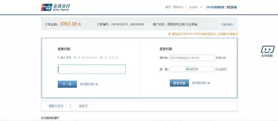 银联在线支付:未签订三方协议缴款的纳税人,可选择银联在线支付完成缴款。